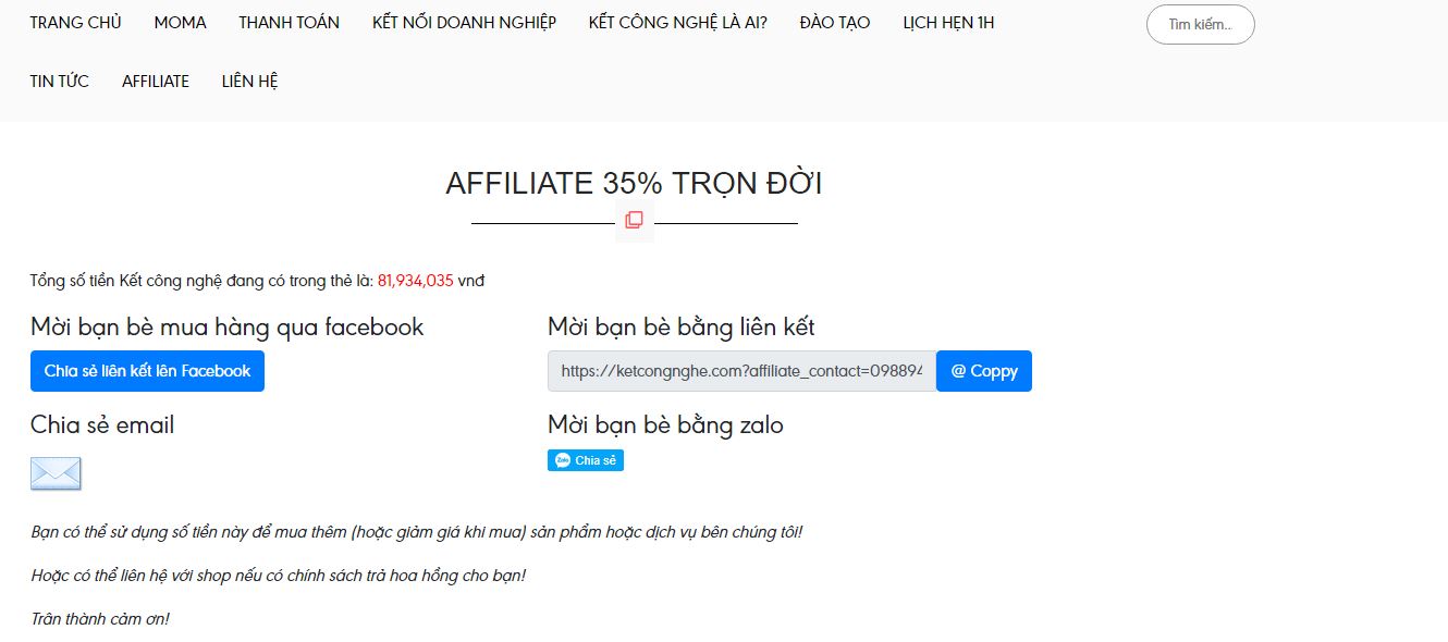 Bước 2: Gửi link đã tạo cho bạn bè đăng ký và nhận tiền thưởng khi có lượt đăng ký thành công qua link này