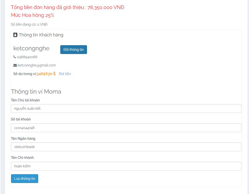 Nguồn thu từ CTV= Doanh số bán hàng từ nhiều công ty + Doanh số giới thiệu người mua hàng ( hoa hồng vĩnh viễn) + Doanh số Giới Thiệu Moma