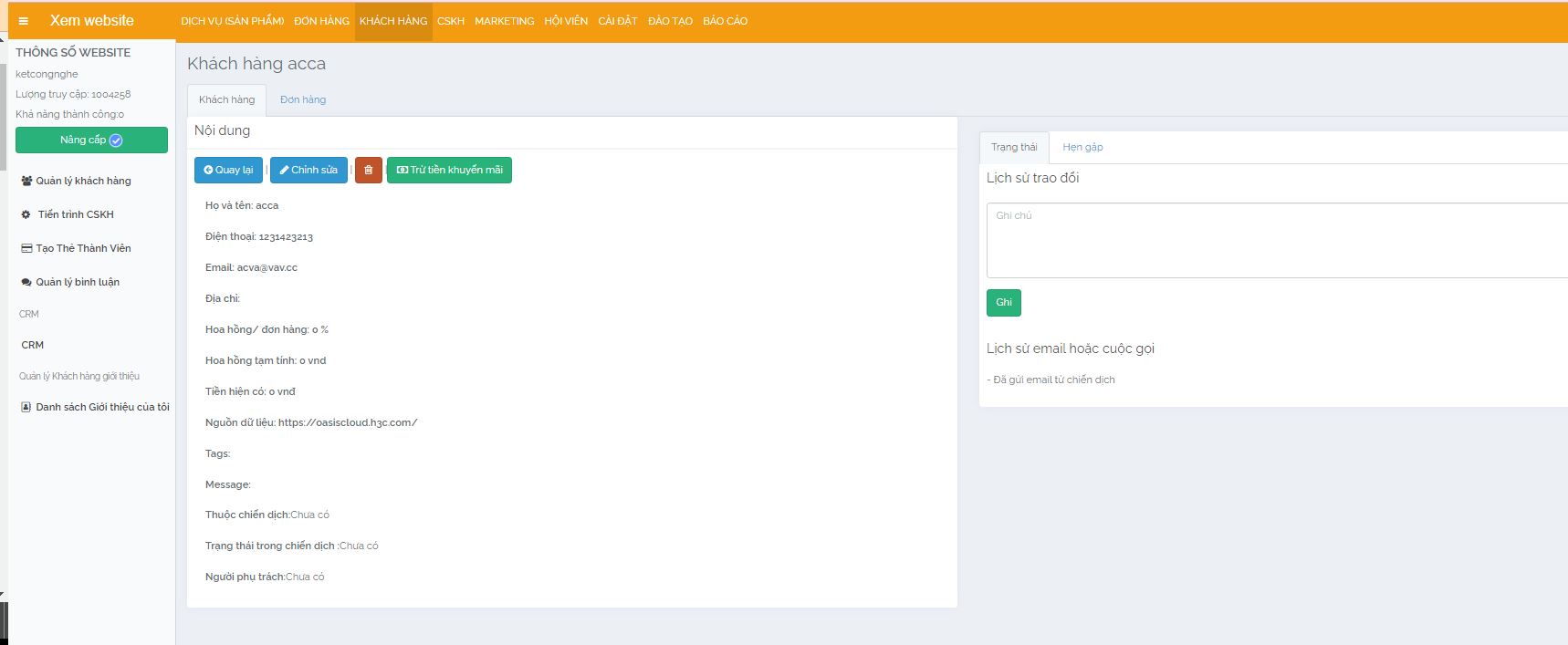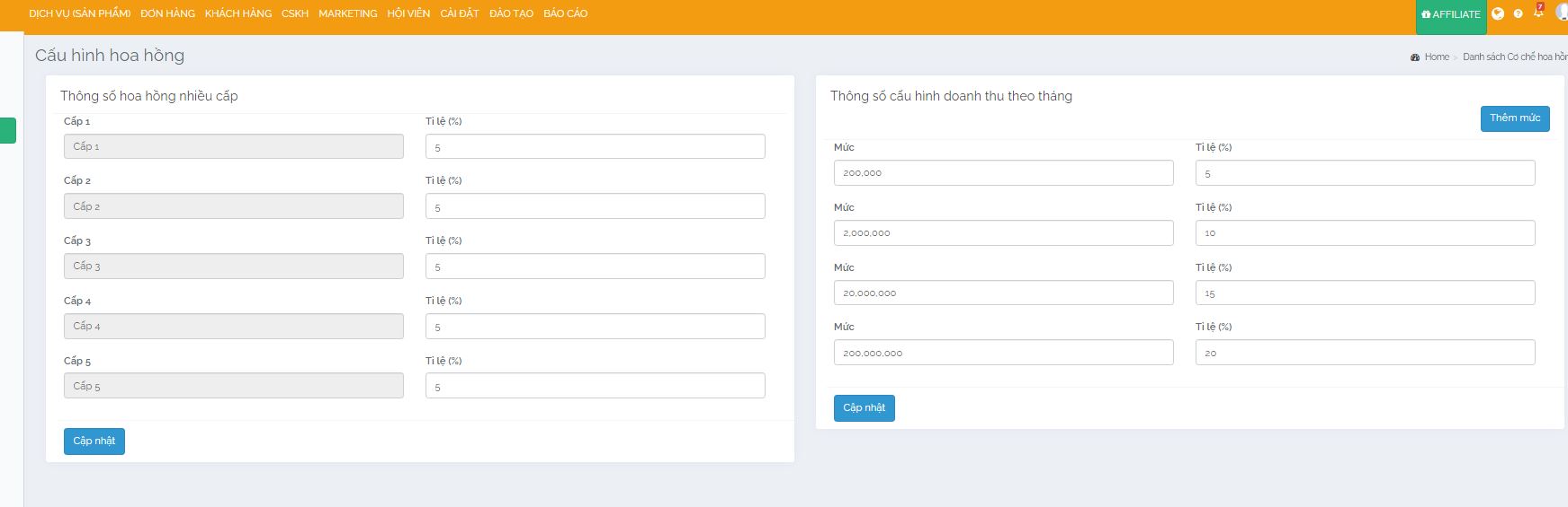 Note: Hoa hồng 1 cấp cấu hình ở đây nếu khách quay lại hoặc giới thiệu người khác sẽ nhận hoa hồng. Lịch sử trao đổi