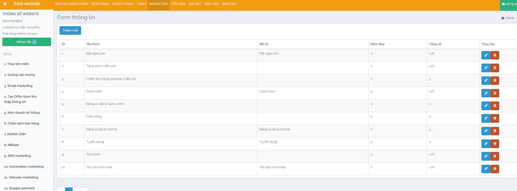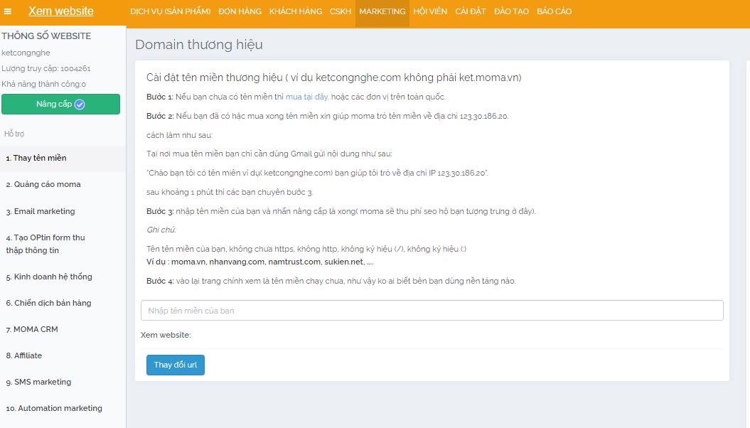 Tạo webstie xong tại sao tôi lại không tìm thấy được webstie trên google: Nếu bạn hỏi câu hỏi ngày thì bạn đang thuộc dạng Gà trong marketing nói đơn giản, moma là nền tảng tạo webstie giống chủ nhà cho bạn thuê nhà còn cho thuê xong để người ta ai cũng biết đến bạn thì bạn phải hiện diện dần người ta mới biết thời gian nhanh từ 2-7 ngày là google index kết quả, nếu muốn nhanh thì bạn share webstie lên tường zalo cá nhân, website cá nhân có truy cập ngay lập tức google hiểu đó là website thật và moma sẽ gửi thêm người truy cập