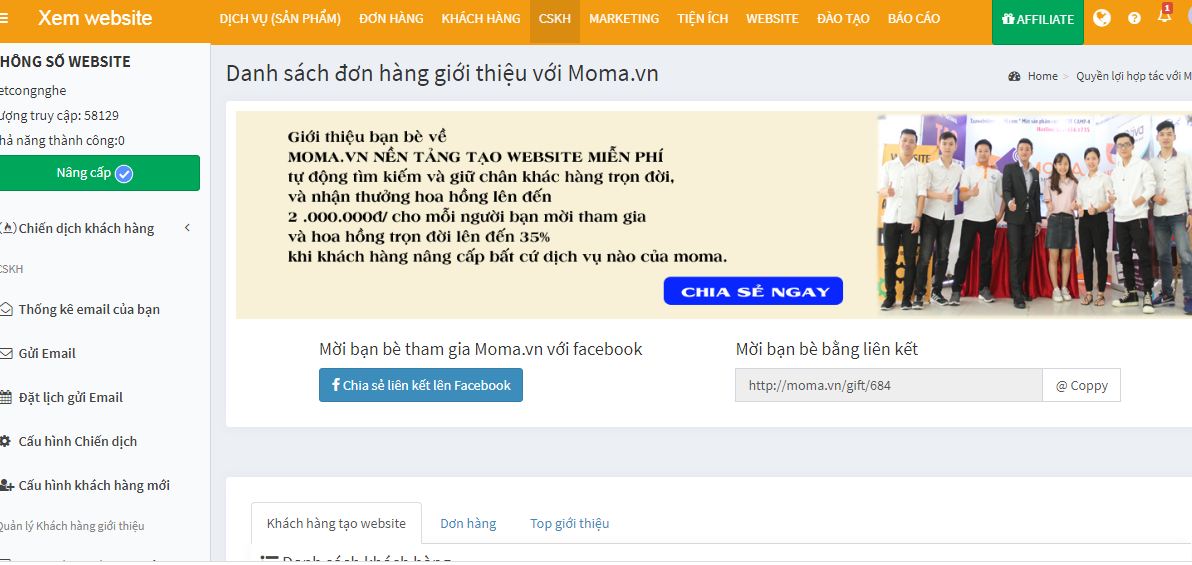 BƯỚC 1: TẠO MỘT WEBSITE MARKETING MIỄN PHÍ MOMA TẠI ĐÂY