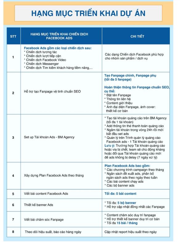 2. Chi tiết hạng mục triển khai Chiến dịch Facebook Ads