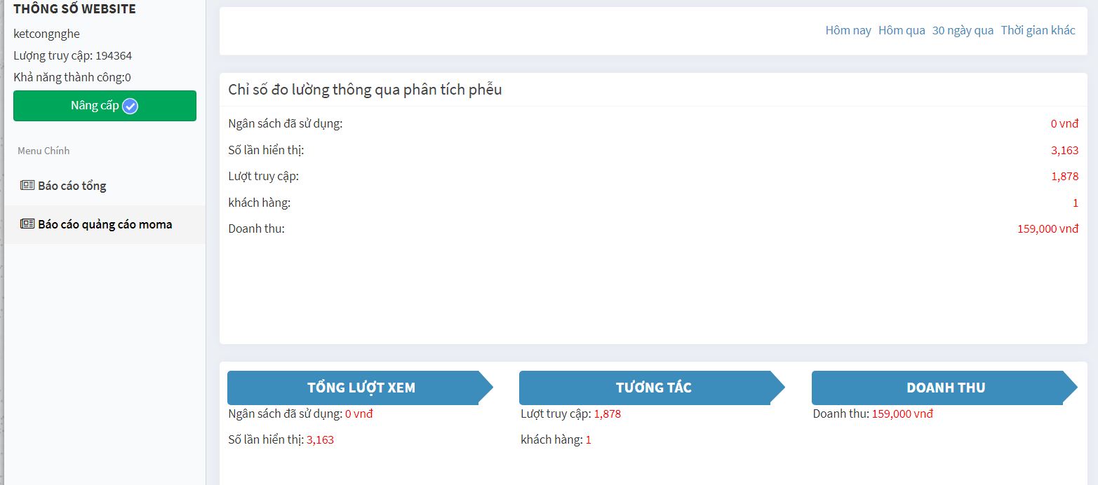 1.2 Tự động tìm kiếm được khách hàng thông qua google, facebook không cần marketing nhiều.( Với nền tảng quảng cáo miễn phí mỗi ngày khách hàng sẽ có truy cập từ 5000-15.000 miễn phí từ hệ thống moma ad giúp tăng lượt truy cập vào website mình và không cần quảng cáo) từ đó tự động lên top google. Được ví như cao thủ seo nhất thị trường hiện nay.
